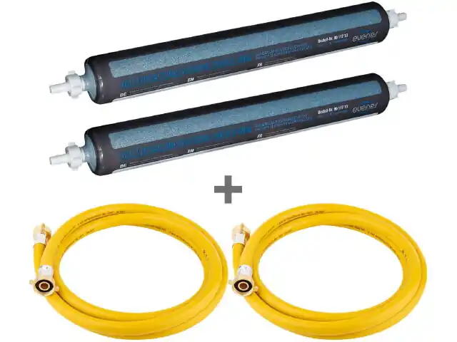 Aktionsaket 2x Vollentsalzungspatrone evenes mini, mit Farbumschlag + 2x Gratis Füllschlauch 2,5m