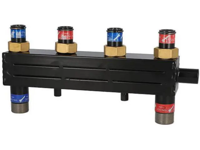 Der Brennwert-Heizungsanlagen-geeignete Heizkreise werden durch den thermisch getrennten Vor- und Rücklauf optimal geführt. Zusätzlich ist der Kombiverteiler mit Isolierung und Wandbefestigung ausgestattet.